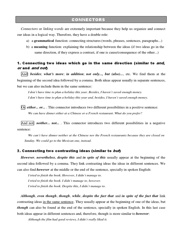 Linking Words List Of Sentence Connectors In English With Examples Myenglishteacher Eu Blog